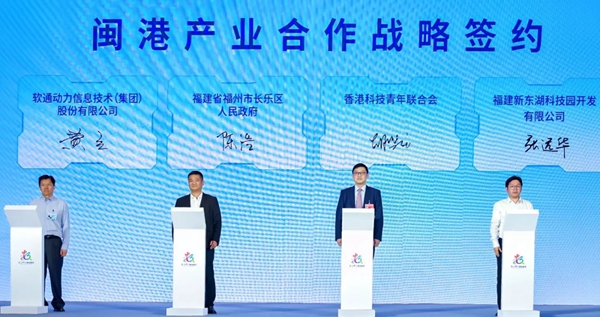 随后,福建省福州市长乐区人民政府、香港科技青年联合会、软通动力信息技术(集团)股份有限公司和福建新东湖科技园开发有限公司进行了闽港产业合作战略签约,整合各方在技术、市场、人才等方面的优势资源,为闽港数字经济产业链的完善与强化奠定基础。