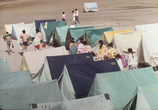 下沙当年的露营火爆场景。来源:福州有意思。王建平/摄