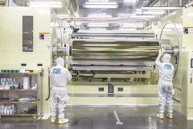 福米产业园的企业员工正在进行偏光片生产。 陈暖 摄