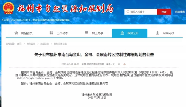 日前,福州市自然资源和规划局发布南台岛会展南片区控制性详细规划公告。