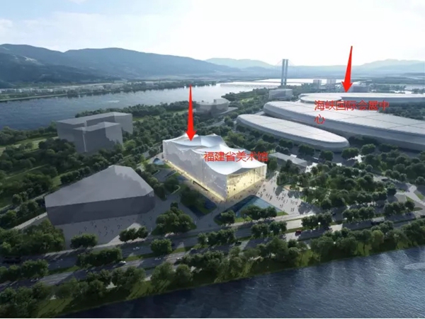 在建福建省美术馆位于海峡国际会展中心西侧,项目主要建设内容包括收藏保管功能区、展览展示功能区、文化交流功能区、教育培训功能区、业务与研究功能区、室外广场雕塑区等,并做好预留对接二期文化保税区的功能。