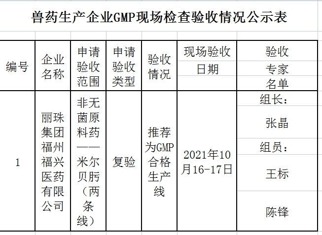 2021年第2批兽药企业GMP检查验收情况公示