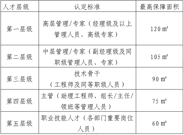三、企业人才层级认定标准及相应保障面积