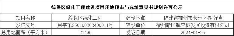 综保区绿化工程建设项目用地预审与选址意见书规划许可公示
