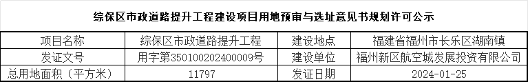 综保区市政道路提升工程建设项目用地预审与选址意见书规划许可公示