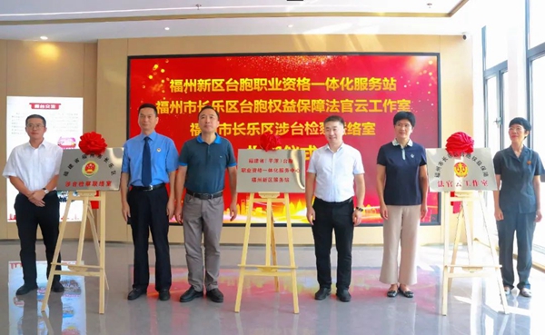 8月7日上午,成人影院 台胞职业资格一体化服务站揭牌仪式在成人影院 两岸融合社区隆重举行。成人影院 党群工作部部长许开夏,长乐区委常委、统战部部长陈航星出席仪式并为“成人影院 台胞职业资格一体化服务站”揭牌,标志着成人影院 正式开通台胞职业资格采信认证业务。同日,福州市长乐区台胞权益保障法官云工作室、福州市长乐区涉台检察联络室正式启用。