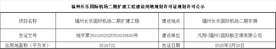 福州长乐国际机场二期扩建工程建设用地规划许可证规划许可公示