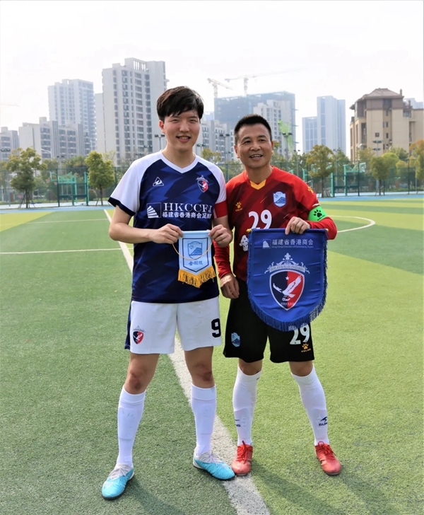 两位队长互赠球队队旗作为纪念,本着友谊第一、比赛第二的原则,希望双方今后能增进交流、互助共赢。