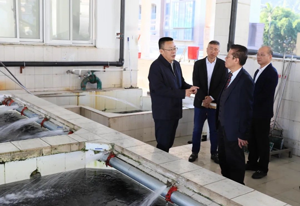 陈云水一行先后察看鳗鱼暂养池、烤鳗加工通道、鳗鱼研究所和实验室,详细了解活鳗收购、暂养、加工的全过程,以及企业实验室自检自控情况和发展需求,并现场协调解决企业存在问题。