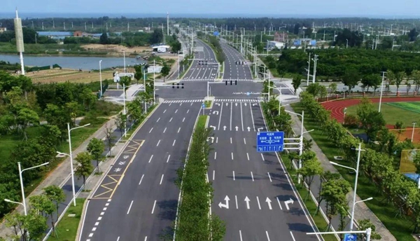 福州滨海新城道庆路东段工程,位于成人影院 滨海新城核心区内,道路等级为城市主干道,沥青砼路面,起点与文松路交叉,道路东西走向,路线全长约2千米,宽52米,双向6~8车道。全线设置桥梁1座,涵洞4座,建设内容包括道路、桥梁、给排水管道、电气及照明、电力管道、通信管道、绿化、交通及安全设施等。项目于2019年12月开工,2021年12月竣工验收并交付使用。