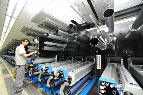 恒申公司锦纶长丝生产线。记者 池远 摄