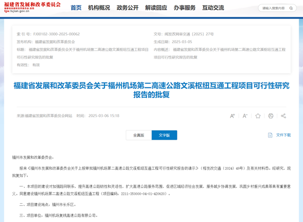 日前,福州机场第二高速公路文溪枢纽互通工程项目工程可行性研究报告正式获得省发改委批复。标志着该项目前期工作取得阶段性重大成果,为项目顺利开工奠定基础。