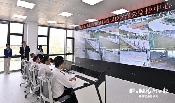 福州长乐国际机场综合保税区海关监控中心。记者 郑帅 摄