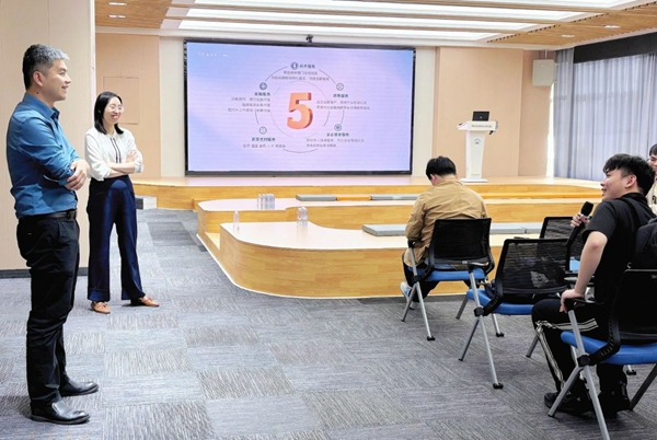 在福州数据技术研究院,相关负责人向代表团详细介绍了新区完善的投融资服务体系,双方围绕生物治污、低空经济、数智农业等前沿领域展开了热烈交流与探讨。