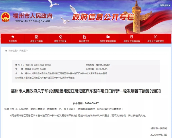 日前,福州市政府印发《促进福州港江阴港区汽车整车进口口岸新一轮发展的若干措施》,促进江阴整车口岸持续健康发展。