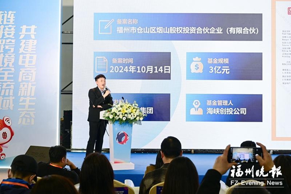 在资金服务港招商对接会暨金融机构投资推介会上,仓山国投集团推介了仓山产业基金,中国银行福建省分行作跨境电商金融服务宣讲。